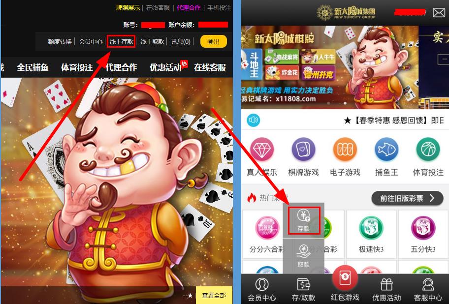 手机用户:进入新太阳城集团官网,登入会员账号后,点击存/取款--存款。
