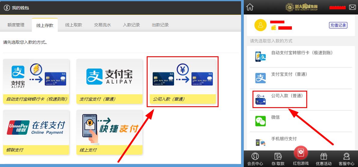 电脑用户:进入新太阳城集团官网,登入会员账号后,点击线上存款。